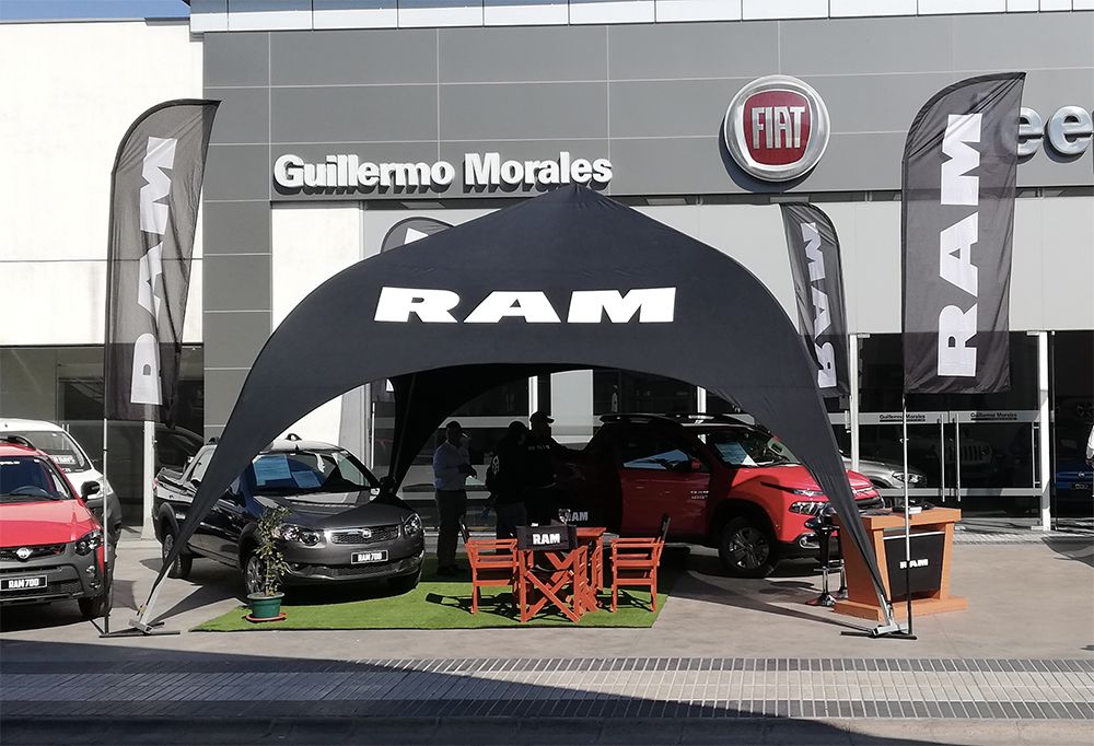 Toldo publicitario tiene como principal característica generar entornos que protegen al usuario de factores medioambientales como lluvia y sol entre otros, proporcionando sombra y un área confortable con una óptima visualización en 360°